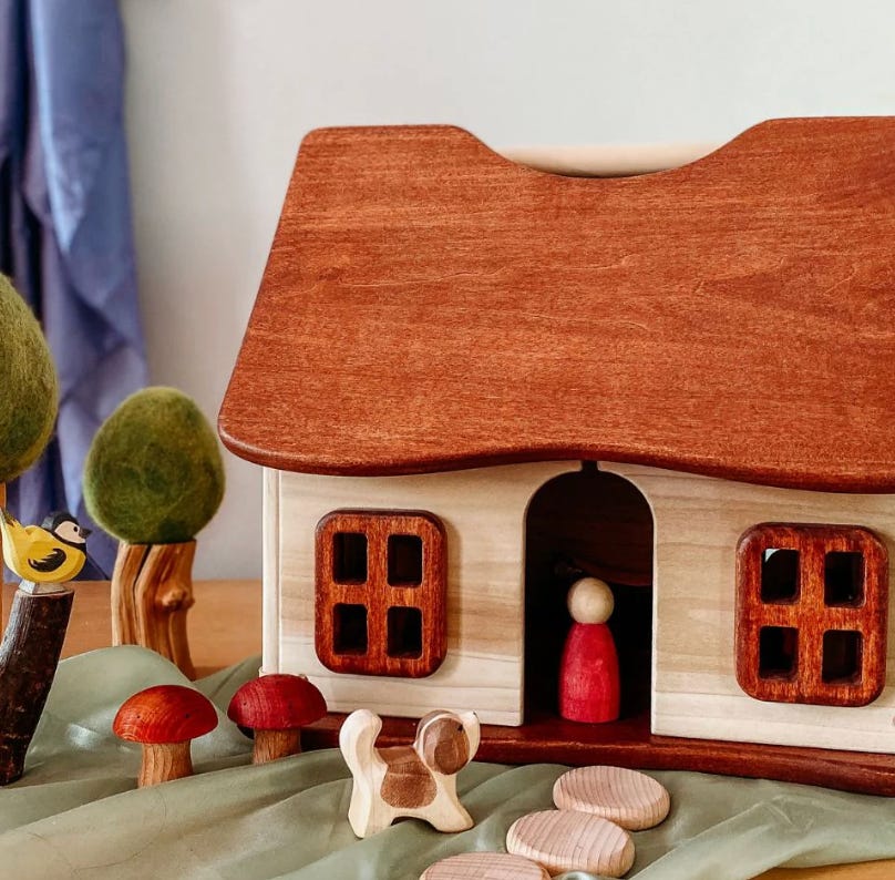 These are the moms who can afford to spend $200 on an extremely minimalist wooden dollhouse instead of a Fisher Price Little People barn, which is bound to be so overstimulating that if Wren plays with such a monstrosity, she will be on a dark path to other dangers, like the occasional Bluey episode. Next stop: heroin.